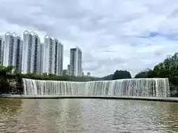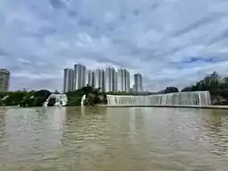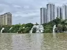 Kunming Waterfall Park is a central park in the heart of the city. It's home to Asia's largest artificial waterfall, measuring 400 meters wide and taking over three years to build. Inside, it features a waterfall and two lakes. Below the waterfall is a walking path, perfect for taking photos and enjoying the view. The surrounding area also offers a walking trail for relaxing. If you're in Kunming and don't know where to go, this is a great place to chill.