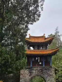 Jindian Golden Pavilion (Jindian Park) Located on Mingfeng Mountain in the east of Kunming, the Jindian Golden Pavilion was built by a Ming Dynasty general and served as the residence of the traitorous warlord Wu Sangui and the beauty queen Chen Yuanyuan. Standing 6.7 meters high and 6.2 meters wide, it is the only pavilion with walls and a roof made of bronze, weighing 380 tons. It is the largest bronze structure in China, making it the largest bronze temple in China.