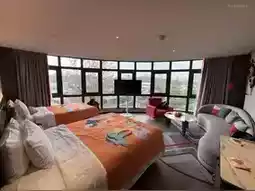 The room design is also very appealing ✨ Our room had a huge curved window, allowing us to enjoy the city view right from the bed 🌆 The style is modern with trendy elements, the color scheme is sophisticated, and the facilities are complete, making the stay comfortable and stylish. There are also themed rooms available, full of playful charm 👨👩👧👦 Perfect for families with kids~