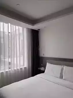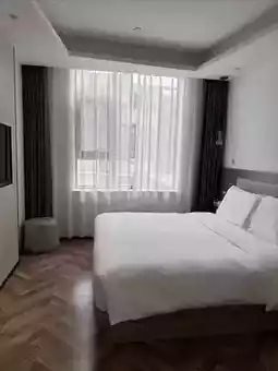 The vintage texture of the herringbone wood floor collides with the pure white space, enveloping you in a sense of sophistication the moment you step in. The curved sofa and terrazzo round table in the room are designer “photo-worthy surprises”; the upholstered headboard of the large bed is exquisite and soothing, and the white bedding looks as soft as clouds under the light.