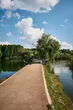 Strolling along the trail 🚶♀️, on one side is the rippling water surface (pic 3) 🌊, on the other side the willow branches gently brush the riverbank (pic 4) 🌿, and you might even see people leisurely fishing 🎣. If walking feels tiring, the park’s sightseeing vehicle is also very convenient (pic 5) 🚗.