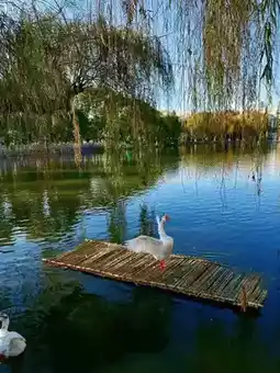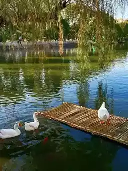 Cuihu Lake, visited during off-peak hours, has less noise. In autumn, the lake surface shimmers 💧, with willow trees along the shore turning from green to a light golden hue. Egrets occasionally glide across the water 🦢. The lakeside path is covered with soft fallen leaves, and bird calls can be heard 🐦, with sunlight filtering through leaves to cast dappled shadows.