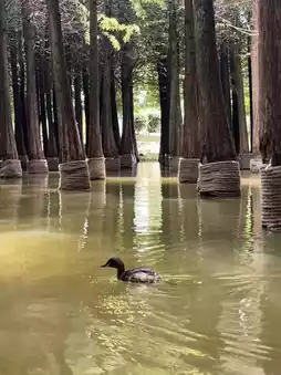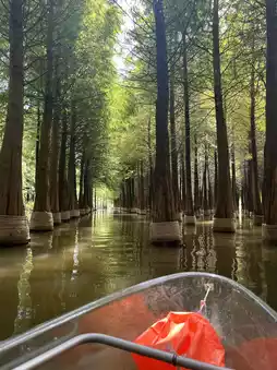 Kunming Haihong Wetland Park is located on the eastern shore of Dianchi Lake, with rows of neatly arranged water cypresses on both sides. Visitors can rent a transparent canoe to paddle through the forest. Not only is it visually stunning, but it also makes for great photos! If you're lucky, you might spot ducks swimming around, gracefully diving and surfacing, full of vitality!