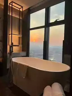 The rooms are spacious and elegant, with Chinese elements and elegant porcelain decorations. The large sofa by the window is very comfortable, and the sunlight makes the room feel warm and cozy. The bathtub is great, the bathroom is spacious, the toiletries smell good, and the bedding is comfortable. I slept like a baby!