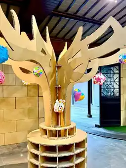 At the entrance of Carton King Creative Park, you'll find decor and ornaments made entirely of cardboard, offering a truly eye-opening experience.