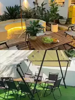 3️⃣Facilities include a long swimming pool🏊🏻♀️, a large lawn🌿, swings🪄, mahjong🀄, a tea room🍵, projection equipment🎥, KTV🎤, a self-service kitchen🥘, barbecue grills🍖, and a stove for tea-brewing🍠.