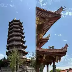 ◦ Nine-Story Pagoda: Iconic temple building, with a stunning lake reflection behind the pagoda, a perfect photo spot.