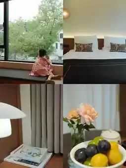 Our room, "Weichi," had a huge green lake-view window πͺ. As the misty rain blurred the scenery, we watched small boats glide leisurely through the water town. The interior decor merged seamlessly with the outdoor views, and my daughter excitedly watched by the window for ages~ π