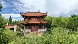 Suzhou-Style Back Garden: Behind the pagoda lies a Jiangnan courtyard with small bridges and flowing water, where red walls and green bamboo create a striking contrast, perfect for photography.