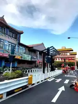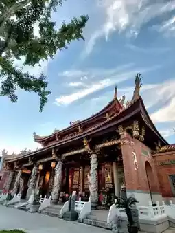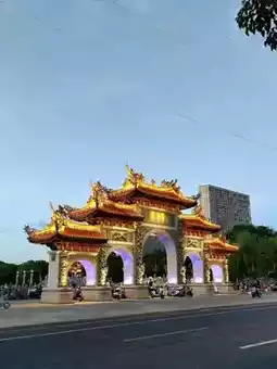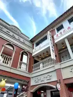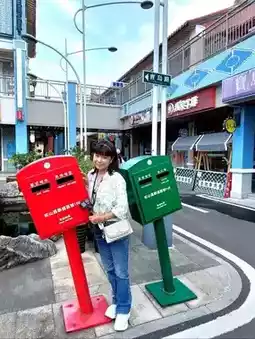 Walking on the dragon-patterned stone road, looking up at the solemn building with stacked eaves and a sky-high roof, I visited the pagoda. Smelling the familiar smell of incense, I was actually unusually calm at this time. This imitation Minnan temple building and Formosa Street are small places for mainlanders to peek into our life and culture, but every place depicts the prosperity of Taiwan in the past. When the colorful lights around slowly light up, I couldn't help but smile and make a "YA" gesture, standing next to the crooked mailbox and taking a photo with the desolation.