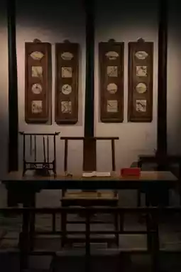 Entering the front hall, the courtyard is quietly adorned with greenery, and the shell-shaped windows of the side rooms exude a sense of warmth polished by time. Sunlight streams through the windows, casting dappled patterns on the ground, as if narrating stories of the past. The main hall is spacious and bright, with wooden drum stools beneath the columns silently showcasing the unique charm of Ming Dynasty architecture. Inside the hall, Ming-style rosewood furniture is neatly arranged, and calligraphy and paintings hang quietly on the walls. A couplet reading "Sedans enter through the front door, boats pass through the house" perfectly encapsulates the ingenious layout of Zhang Hall.