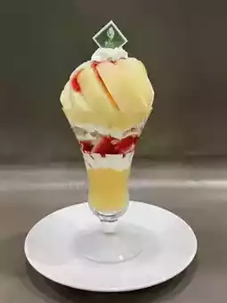 Back at Okayama Station, have a peach parfait at Kannonyama Fruit Parlor for dessert🍑