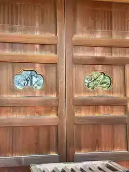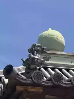 Returning to Kōryū-ji, visitors must ascend the stairs next to the Tsurugata Mountain Tunnel to reach the temple. The temple exudes a serene and solemn atmosphere, unlike the bustling temples of Kyoto. The main hall was rebuilt during the mid-Edo period, and its roof tiles, adorned with designs of gentian and chrysanthemum, are 250 years old. Uniquely, Yakushi Nyorai, Jizō Bosatsu, and Konrin Tenno each have their own small structures for worship, differing from the typical side halls found in other Buddhist temples.