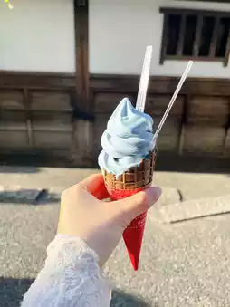 You can eat blue-colored foods such as denim buns and soft serve ice cream!!