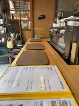There's counter seating surrounding the kitchen, and they also have terrace seating.
