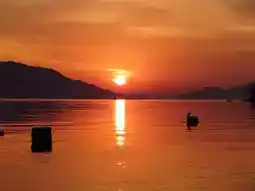 Takehara Historical Preservation District, sunrise/sunset on Kurahashi Island, volcano