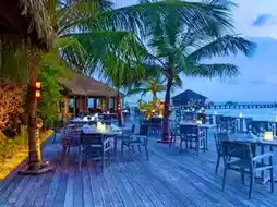 The restaurants serve a mix of international and Maldivian dishes, and the beachfront bars are perfect for sunset cocktails.