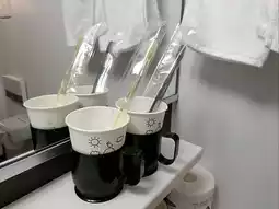Amenities are available at the front desk, and the rooms are simple and well-appointed, making this a recommended hotel.