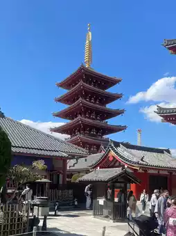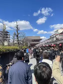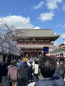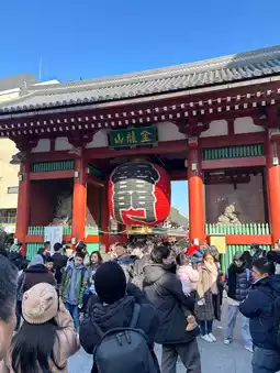 Sensoji Temple, also known as Asakusa Temple, is a very popular temple for tourists visiting Tokyo. It's the most famous temple in Tokyo, thanks to the large red lantern at the entrance. This iconic landmark draws many visitors. Even on a weekday, it was incredibly crowded. The temple also boasts a wealth of traditional Japanese architecture for you to explore.
