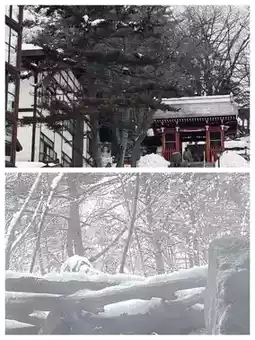 Bouun Hot Spring Hotel: Private hot springs in the courtyard + *kaiseki* cuisine, enjoying the snowy scenery while bathing is like stepping into a painting.