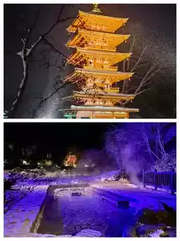 Winter: January Snow Lantern Road, lanterns illuminate the snowy hot spring town, enjoy both bathing and snow viewing.