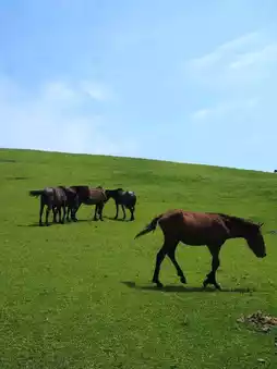 On clear days, you can even catch a glimpse of Kagoshima and Yakushima in the distance ✨. Escape the hustle and bustle of city life and immerse yourself in a serene moment surrounded by nature and horses❣️. This unique scenery is sure to leave a lasting impression on your heart.