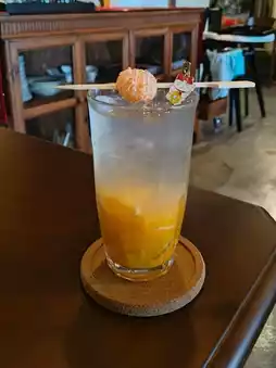 I ordered their Tangerine Spritz, which was not only refreshing but also a visual delight. The presentation was on point—a vibrant tangerine slice with a decorative skewer added that extra touch. The drink had the perfect balance of citrusy tang and sweetness, making it a treat for both my eyes and taste buds.