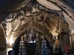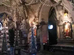 Marvel at the jaw-dropping bone chandelier centerpiece—don’t miss the coat of arms crafted from kneecaps and skulls. Take a quiet moment to appreciate the history (the remains of 40,000 people!) and the unusual beauty.