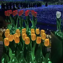 Nabana no Sato is a flower park famous for its beautiful seasonal flowers and fantastic illuminations. The park's colorful flower beds and expansive gardens offer a glimpse of nature's bounty in any season: tulips and cherry blossoms in spring, roses and hydrangeas in early summer, cosmos and autumn leaves in autumn, and winter illuminations in winter. 🌷