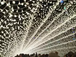 In the evening, the garden's lights begin to shine, adding a touch of fairytale-like beauty to the autumn foliage. Highlights include the light tunnel and the Mirror Lake, which beautifully reflect the colors and light of autumn. There are also restaurants, cafes, and local souvenir shops, making Nabana no Sato a dream destination for travelers seeking the romantic ambiance of autumn foliage and spectacular illuminations.