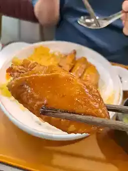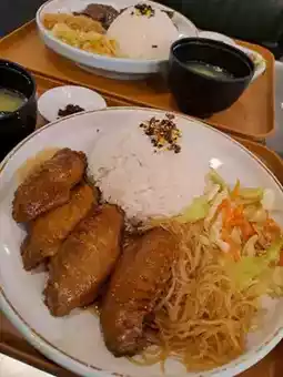 The braised chicken wings are large, with four pieces. The skin is smooth and crispy, and the meat is thick and flavorful, absorbing the braised sauce well. The salty and sweet flavors are well-balanced. It also comes with shredded chicken snacks and kelp soup. The rice is soft and smooth, and mixing it with the braised sauce makes it even more delicious.