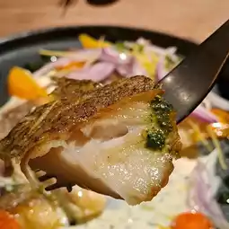 The halibut is crispy on the outside, tender and delicious, the smoothness of the cream sauce and tender fish match well, and the vanilla mint flavor, coupled with the sweet aroma of orange flesh, enhances the freshness of the fish.