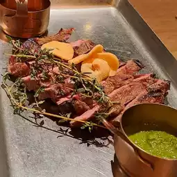 The meat is soft and juicy, served with sea salt and herb sauce.