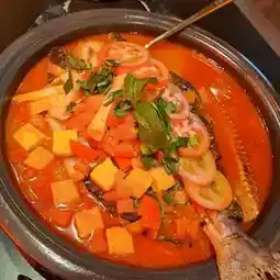 Plenty of Ningbo fish served in the original oven, rich tomato soup, sweet and sour, Ningbo fish skin is smooth and tender, the meat is thick and delicious, covered with bright red tomato slices, tomato slices, smoky marshmallow tofu slices and crispy pickled asparagus slices, multiple taste ingredients, enhance the level of grilled fish.