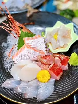 A collection of various seasonal sashimi ingredients: Botan shrimp, Kinmedai, salmon belly, yellowtail, fresh scallops, etc. All are fresh and plump, highly recommended 💯