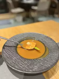Chose a honeydew iced soup, a lobster soup honeydew iced soup quite special soup is more thick drink fresh quite heavy honeydew flavor slightly a little avocado flavor and lobster soup taste quite rich with a little freshness in the middle of shrimp quite fresh and refreshing
