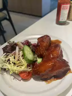 His steak ordered 50%, fried just right crispy outside and soft inside, and the inside is not too cooked bite down very soft, and juicy beef flavor and strong 👍🏻 great. And his beef barbecue sauce will not be too grab the beef flavor after ordering, plus grapefruit juice salad vegetables and fries are very full, enough portion. And the BBQ sauce chicken wings are really good the sauce, very appetizing plus fried to crispy chicken wings mixed together really good! And with a cup of sweet fruit tea really thirst-quenching.