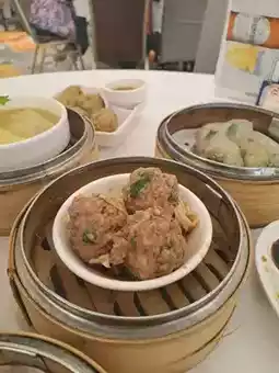 Shrimp seed siu-mai king, having tea and dim sum, relaxing and good atmosphere.