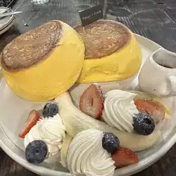 💟Recommended💟Fluffy soufflé, fluffy, full of air, moist and light😬 With maple syrup, cream and fruit together, sweetness just right, sweet but not greasy, very satisfying😌😍