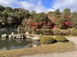 I found myself mesmerized by the pond’s shimmering surface, framed by vibrant foliage and the rolling hills of Arashiyama. The bamboo grove nearby adds a magical touch, making the whole experience feel like stepping into a tranquil painting.