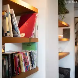 The interior decoration is quite natural🌿, there are different setting tables🪑, the table has a plug-in switch🔌, not afraid of computer or mobile phone running out of battery📱🖥️, and a bookshelf📚, quite a place to chat🗣️.