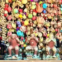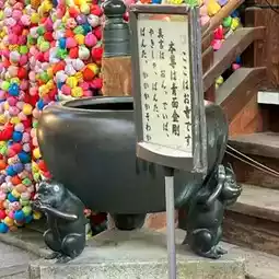 Yasaka Koshindo Temple or, in its full name, Daikokusan Kongoji Koshindo, located in Higashiyama Ward, Kyoto, Japan. is a small temple dedicated to Koshinsan, who is believed to help those who strive for life and help them become good people. The temple also enshrines three monkeys 🐒 🙈 🙊 covering their eyes, ears, and mouth, which means they do not hear anything inappropriate, see anything inappropriate, and do not say anything inappropriate the most striking feature is the "wishing money" called Kukurizaru, a circular charm made of brightly colored cloth, representing the three loyal moneys. write your wish on the ball and stick it at the temple. It is believed that if you give up one of your greed, your wish may come true. around the temple grounds are stone statues, which are often believed by the Japanese to gods. These gods usually act as protectors of travelers. It is definitely a place worth a visit.