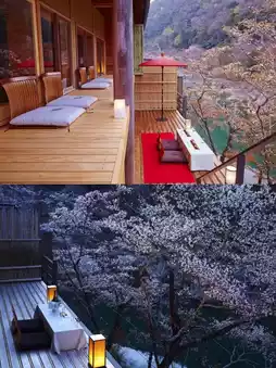 The special way to check in is to take a boat 🚤 upstream along the Hozu River to reach this hotel, which gives you a sense of ceremony as soon as you step in.