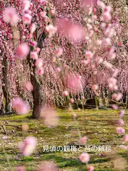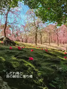 The "Weeping Plum and Camellia Festival" is held every year from February to March, and many spectators visit. The plum blossoms will also fall in the latter half of the season, but the carpet of "falling plum blossoms" that covers the carpet of moss is also a sight to behold🌸😊