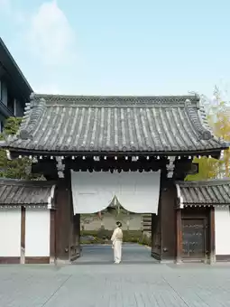 The hotel entrance is a 300-year-old gate called Kajiimiya.