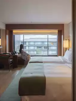 The hotel has a relaxed and calm atmosphere that makes it hard to believe that Kyoto is over-tourized.