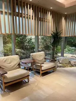 Despite being in a lively area, the hotel has a Japanese atmosphere, and the spacious and calm lobby overlooking the Japanese garden is an attractive feature.