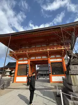 We arrived at Yasaka-Jinja Shrine, one of Kyoto’s most famous shrines, feeling excited to explore. The entrance was marked by a large, vibrant red torii gate, welcoming us to the peaceful grounds. As we walked through the shrine, we admired the beautiful traditional architecture and the serene atmosphere. The main hall stood tall, surrounded by lush greenery and tall trees. We took a moment to appreciate the calmness and the spiritual energy of the place. The shrine’s gardens were peaceful, with small pathways leading to various smaller shrines. It was a perfect place to reflect and enjoy the quiet beauty of Kyoto, making it a memorable stop on our journey.