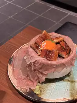 Finally I got to try this popular restaurant, and saw many people recommend it! The restaurant's signature dish is the seared medium-rare beef bowl, which is so filling that it overflows from the bowl, in surprisingly large portions and in a variety of flavors. The extra-large slice of beef rib-eye is slightly seared and topped with a fresh egg yolk, which goes great with rice! You can even add additional ingredients such as salmon roe or sea urchin to create the perfect rice bowl! When there is about half of the rice left, you can add the soup stock, nori, green onions, fried tempura crumbs, sesame seeds, etc. provided by the store and enjoy it as tea rice.