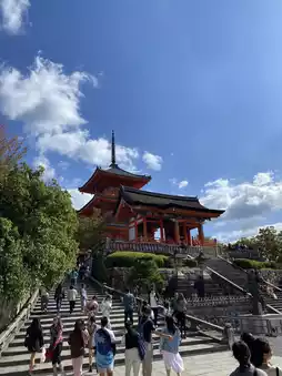 Kiyomizu-dera, a UNESCO World Heritage Site, is the oldest temple in Kyoto, built in 778 and belonging to the Jodo sect. The temple is famous for its magnificent wooden stage that hangs over the hillside, offering stunning views of Kyoto city. The name Kiyomizu-dera comes from the nearby Kiyomizu spring, whose water is believed to have sacred healing powers. You can explore the area by starting from Ninenzaka → Sannenzaka → along Kiyomizuzaka.
